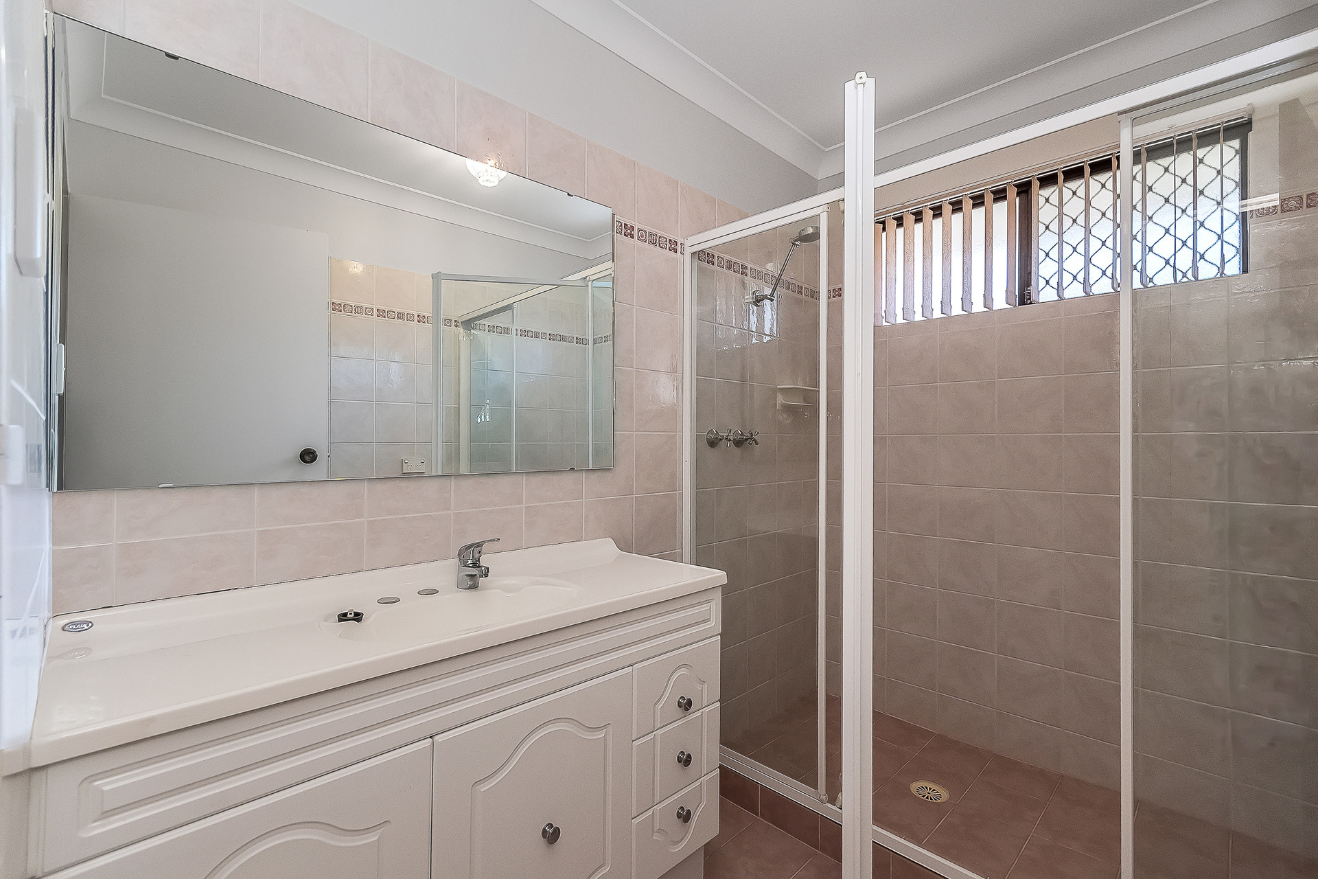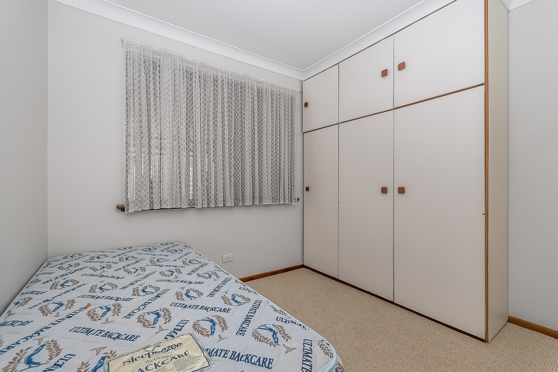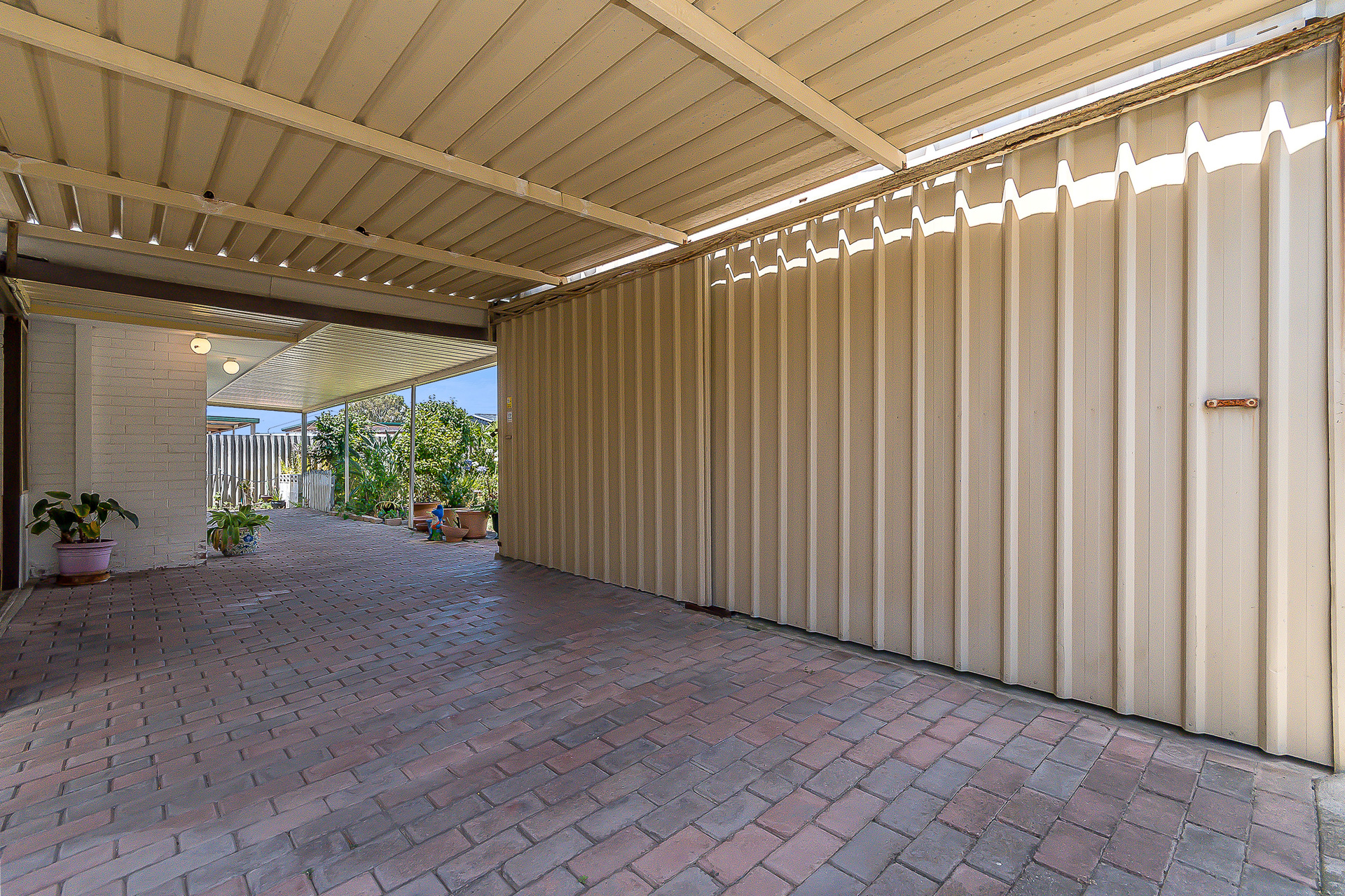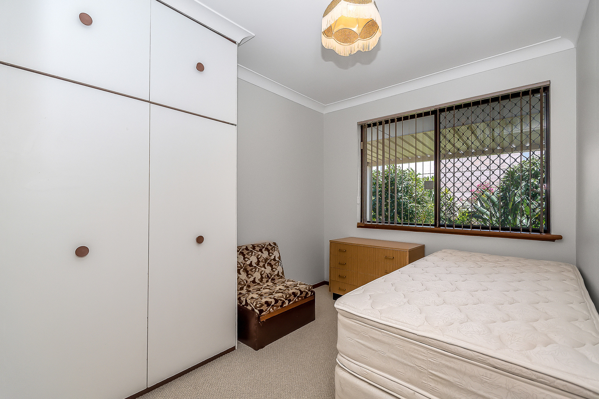 All three bedrooms are well sized and carpeted, with built in robes and feature lighting. The main bedroom is king sized and fitted with a fan, curtains and lots of storage space, while the second and the third bedroom offers vertical blinds. The bathroom is neatly presented with tiled flooring, a single vanity, mirror, towel rail, large shower with glass screen, exhaust fan and vertical blinds, along with the convenience of a separate WC.